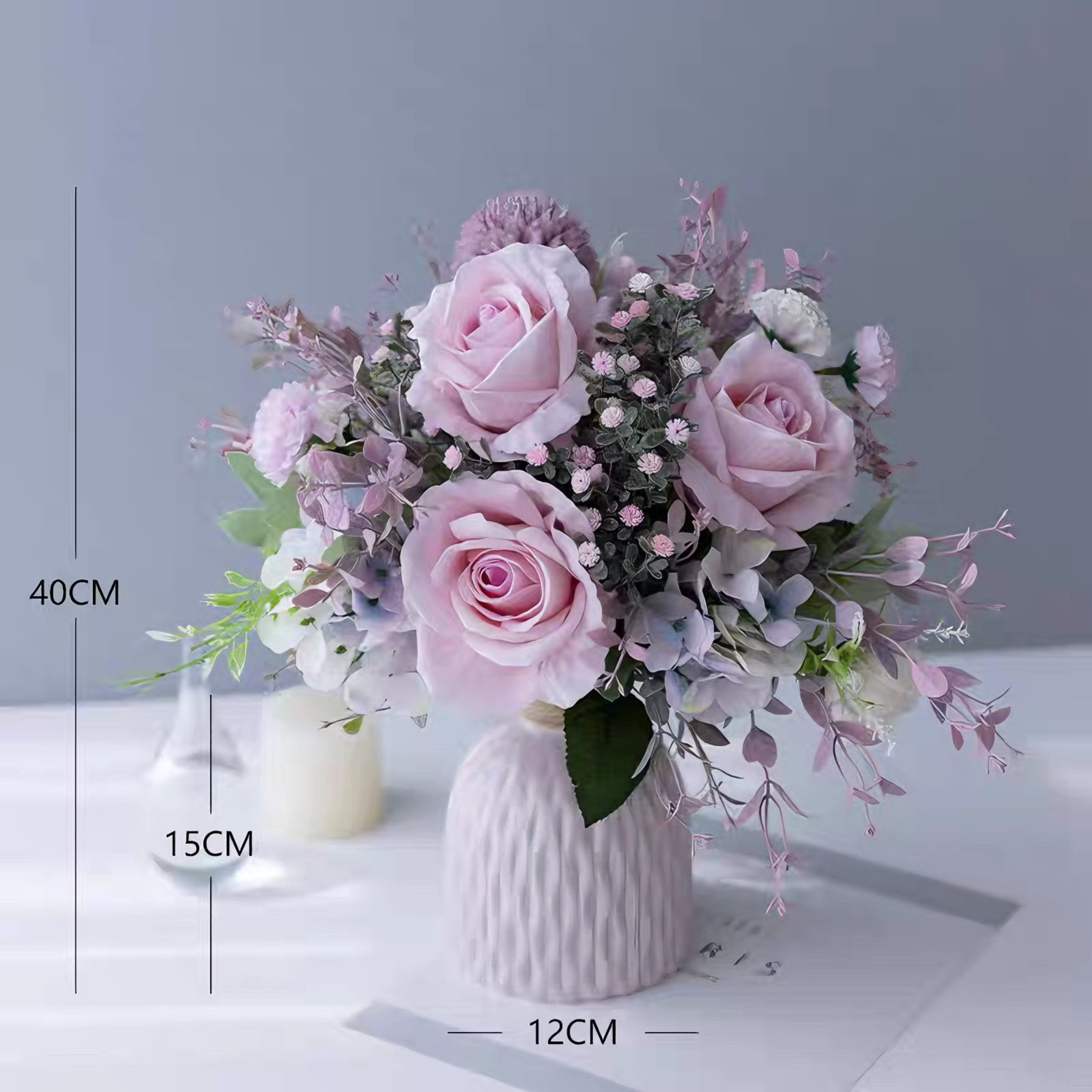 This Blush Whisper Pink Artificial Floral Arrangement features soft, lifelike pink roses intertwined with delicate blooms and textured foliage in muted pastel tones. Set in a stylish, ribbed blush - hued vase, it exudes a gentle, romantic elegance, bringing a touch of dreamy, maintenance - free sophistication to any space, whether as a chic home accent or a heartfelt, long - lasting gift.