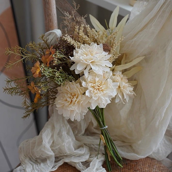 Faux Mixed Floral Bouquet - Cream and Orange (Multiple Stems)