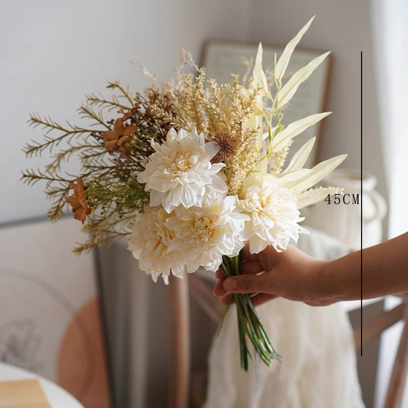 • Flower: Faux mixed floral bouquet (creamy white and orange blooms with complementary foliage), height approx 45cm (17.72").
