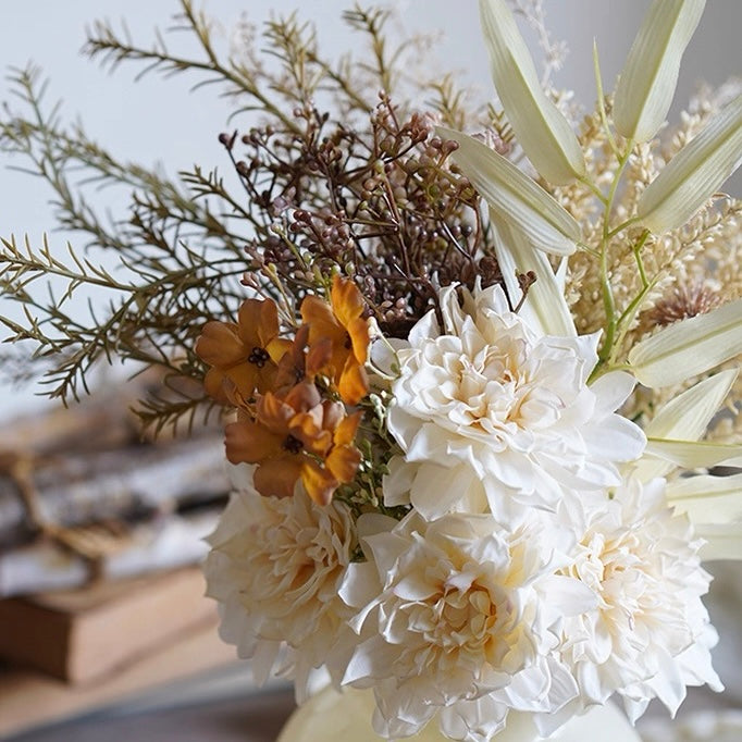 The creamy white and warm orange faux flowers create a cozy, nature - inspired charm, while the textured white vase adds a touch of understated elegance. Perfect for dining tables, mantels, or as an accent for relaxed get - togethers, this arrangement complements decor styles from bohemian to modern.