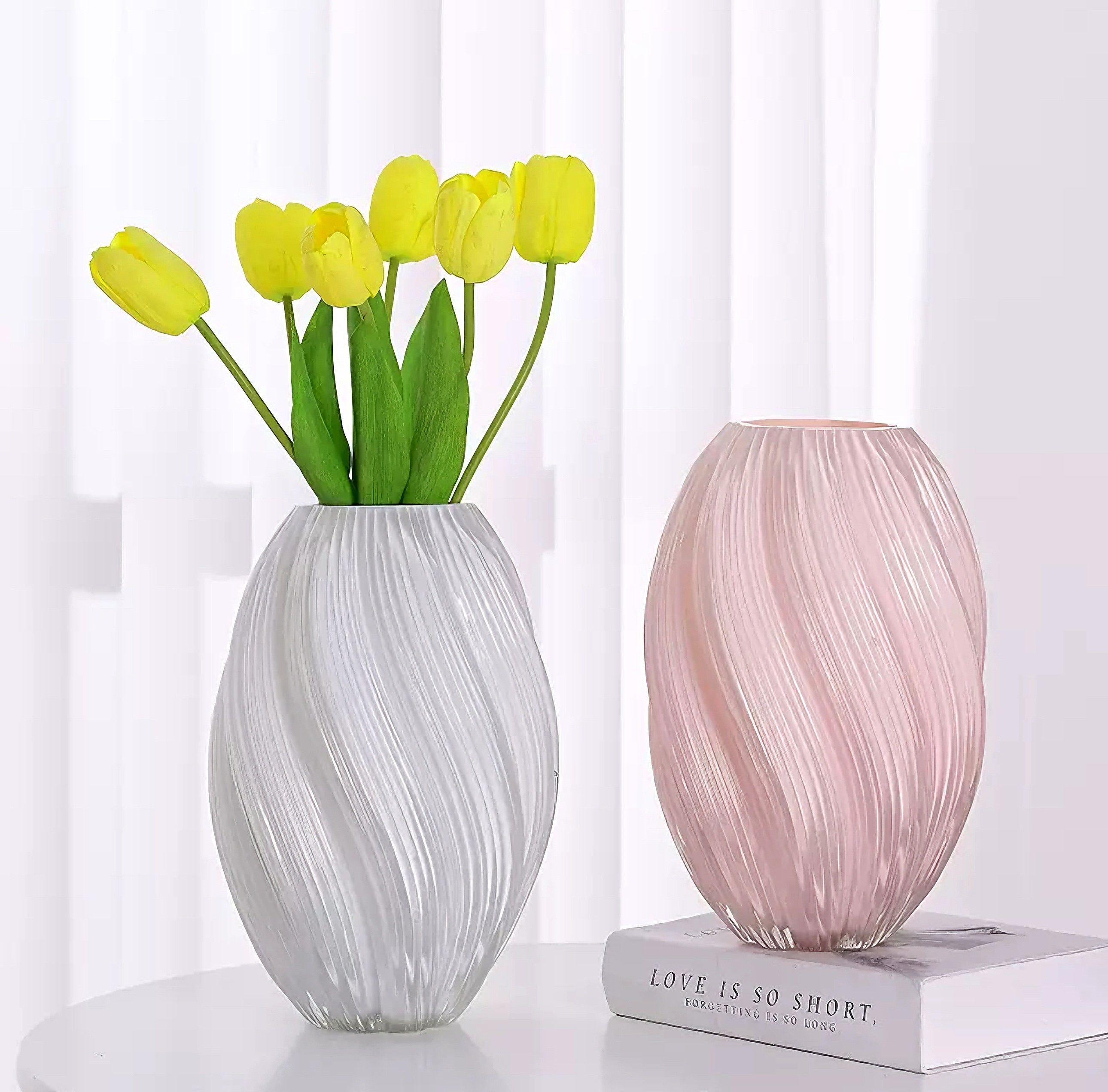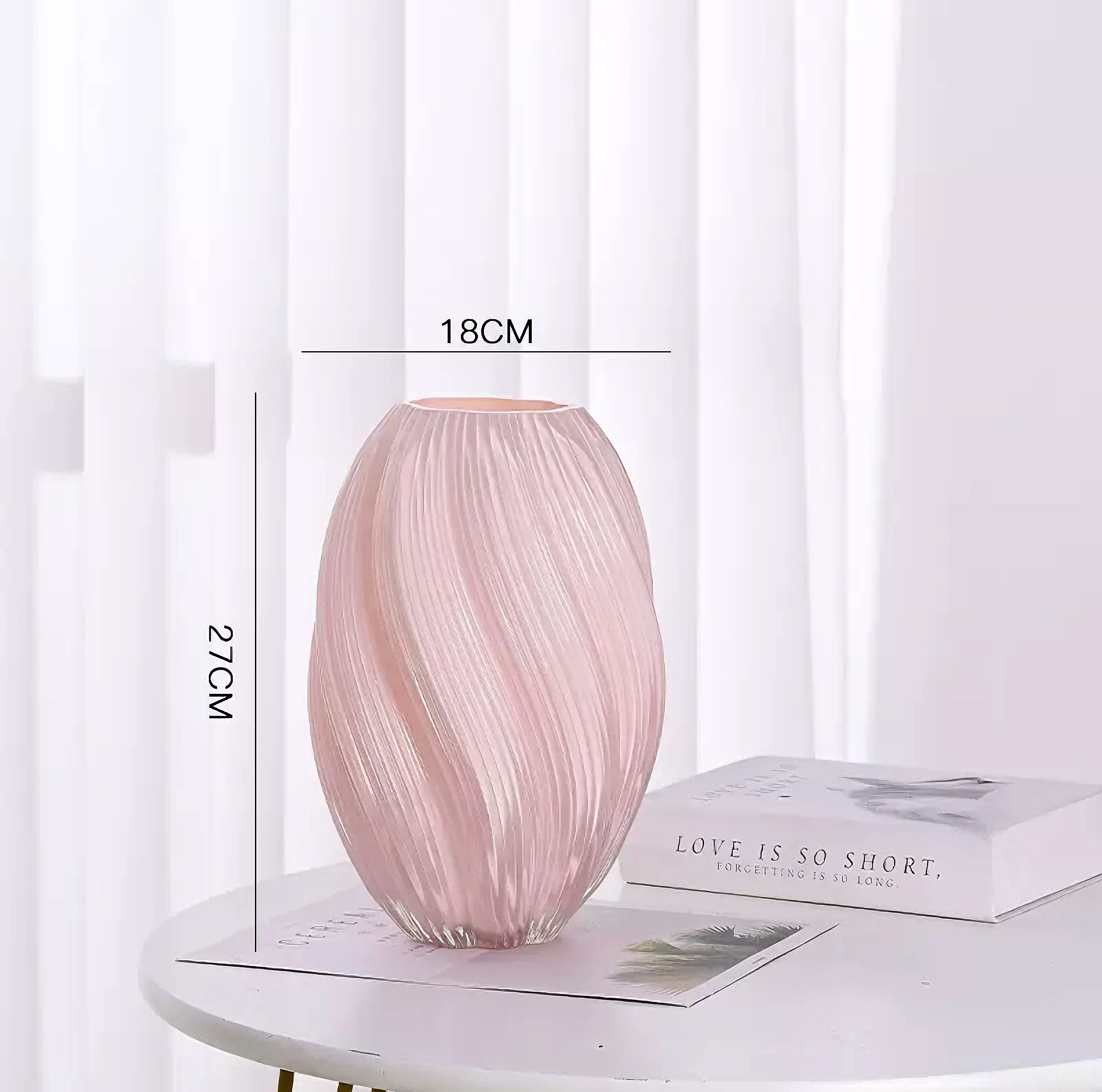 Elevate your space with the  Ripple Art Glass Vase—a masterpiece of craftsmanship where soft blush pink meets cascading spiral textures. Handcrafted with artisanal precision, its undulating lines catch light beautifully. Perfect for displaying blooms or as a standalone sculptural accent, this vase blends elegance and artistry seamlessly.